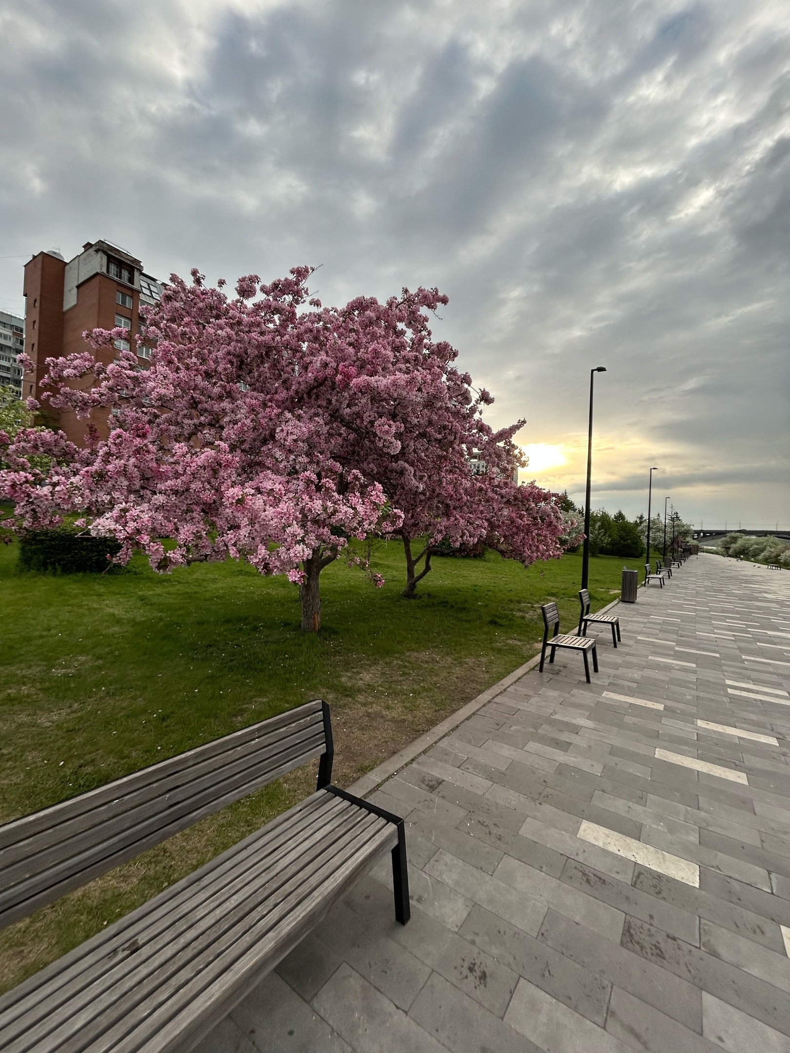 Ну и куда же без пышных цветников на набережной, правда, это уже не миндаль, а розовая яблоня.