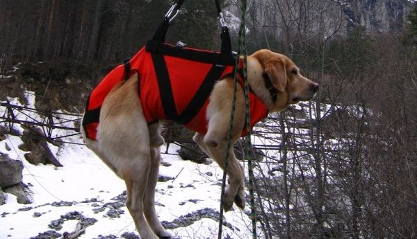 Спасатели сумели с помощью альпинистского снаряжения вытащить собаку наверх: