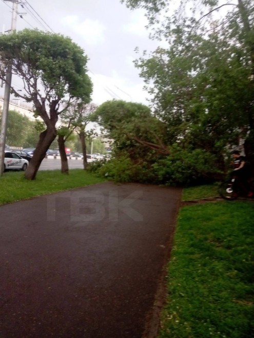 На Тотмина,9 также упало дерево. Оно перегородило тротуар.
