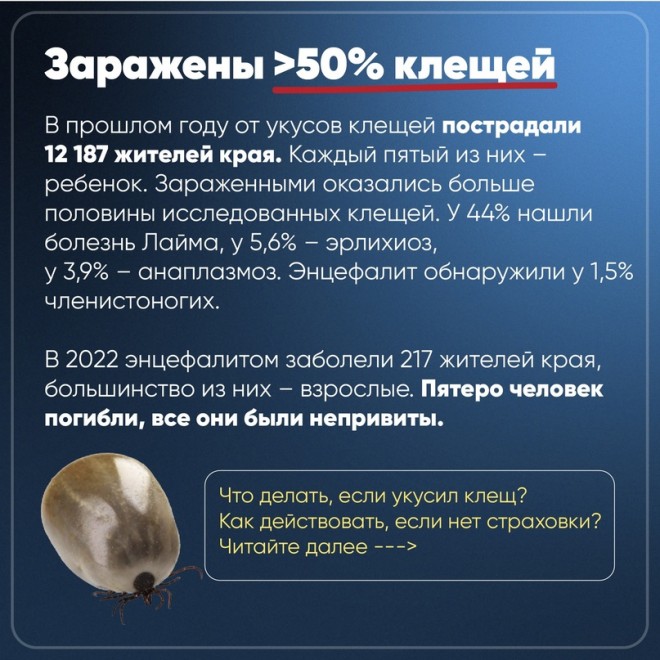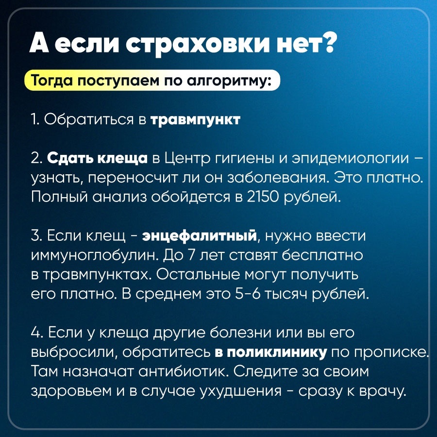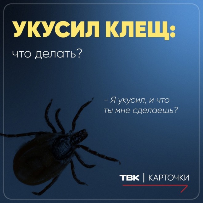 Больше 10 случае присасывания клеща зафиксировали в Красноярском крае с начала сезона. Что делать, если вас укусил клещ? Как действовать, если нет страховки? Ответы – в карточках ТВК