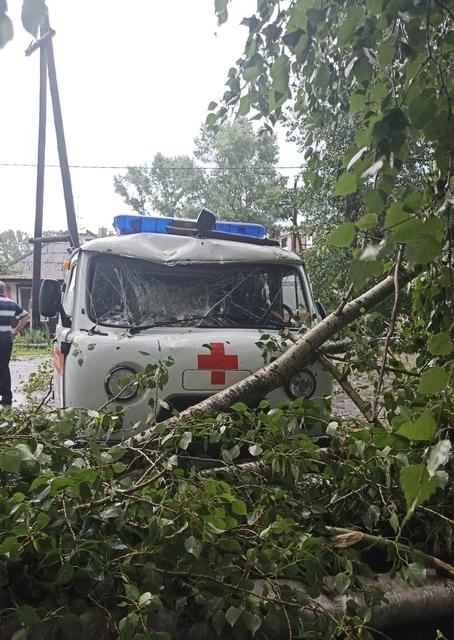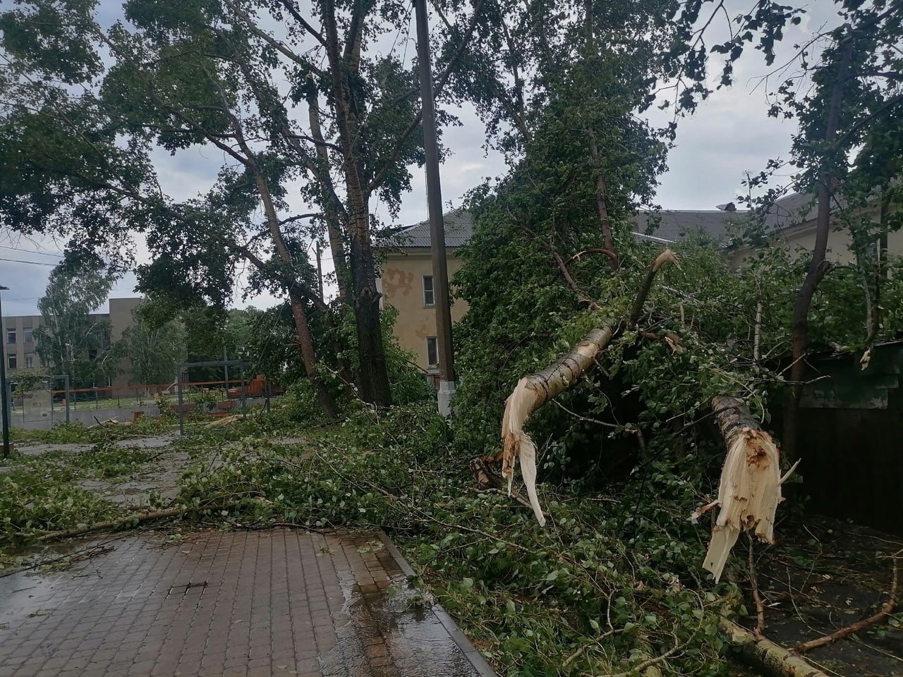 Сильным ветром сорвало крыши и переломало деревья. Также буря обрушилась на город Бородино.