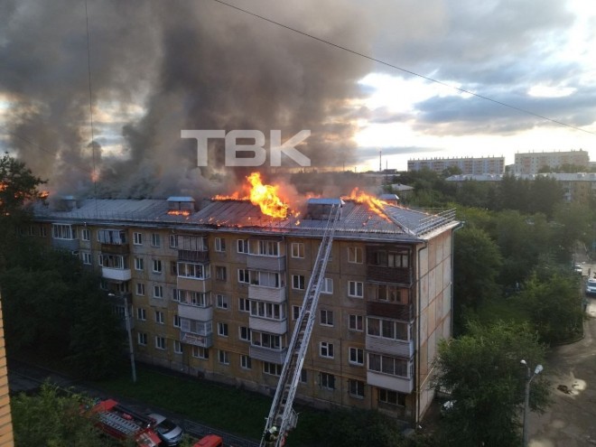 Крупный пожар произошел на правом берегу Красноярска: там загорелась крыша жилого дома. Пострадавших нет, 138 жильцов эвакуировались из дома самостоятельно. Пожар потушили, но теперь квартиры затоплены, и жить в них невозможно. В ситуации разбирались ТВК.