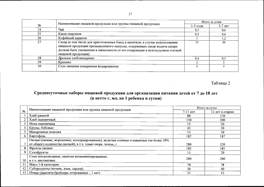 А также указаны рекомендуемые продукты для детей по разным возрастам.