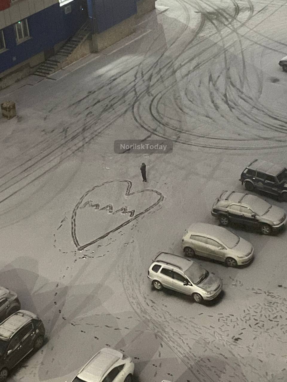 В норильских Telegram-каналах хвастаются своими снежными фигурами и посланиями близким на снегу.