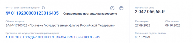 Соответствующий лот появился на портале Госзакупок. Заказчиком выступает краевой Туристский информационный центр (ТИЦ). Изначально флаги хотели приобрести за 2 млн рублей. Однако вскоре определился победитель торгов и цена снизилась почти в 3 раза – до 600 тысяч рублей.