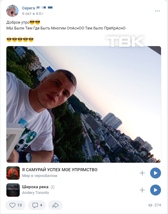 Сергей Шмелев теперь ведет страницу «Вконтакте» под другой фамилией, однако узнать парня по фотографии несложно. Молодой человек публикует фото из Москвы и Красноярска, еще один кадр – Сергей на море.