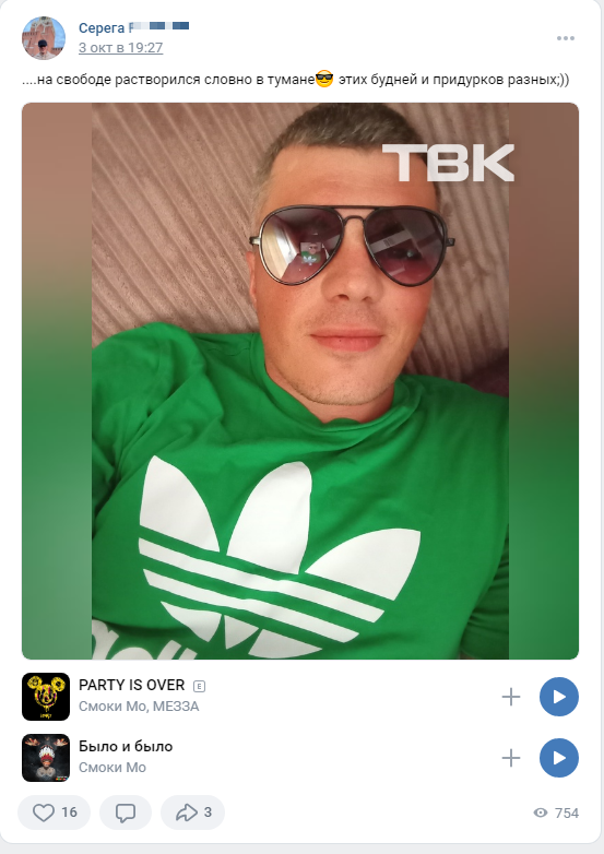 На странице красноярца есть публикации про ЧВК «Вагнер», он подписан на группы с подобной тематикой. Однако каким образом осужденный оказался на свободе – достоверно неизвестно.