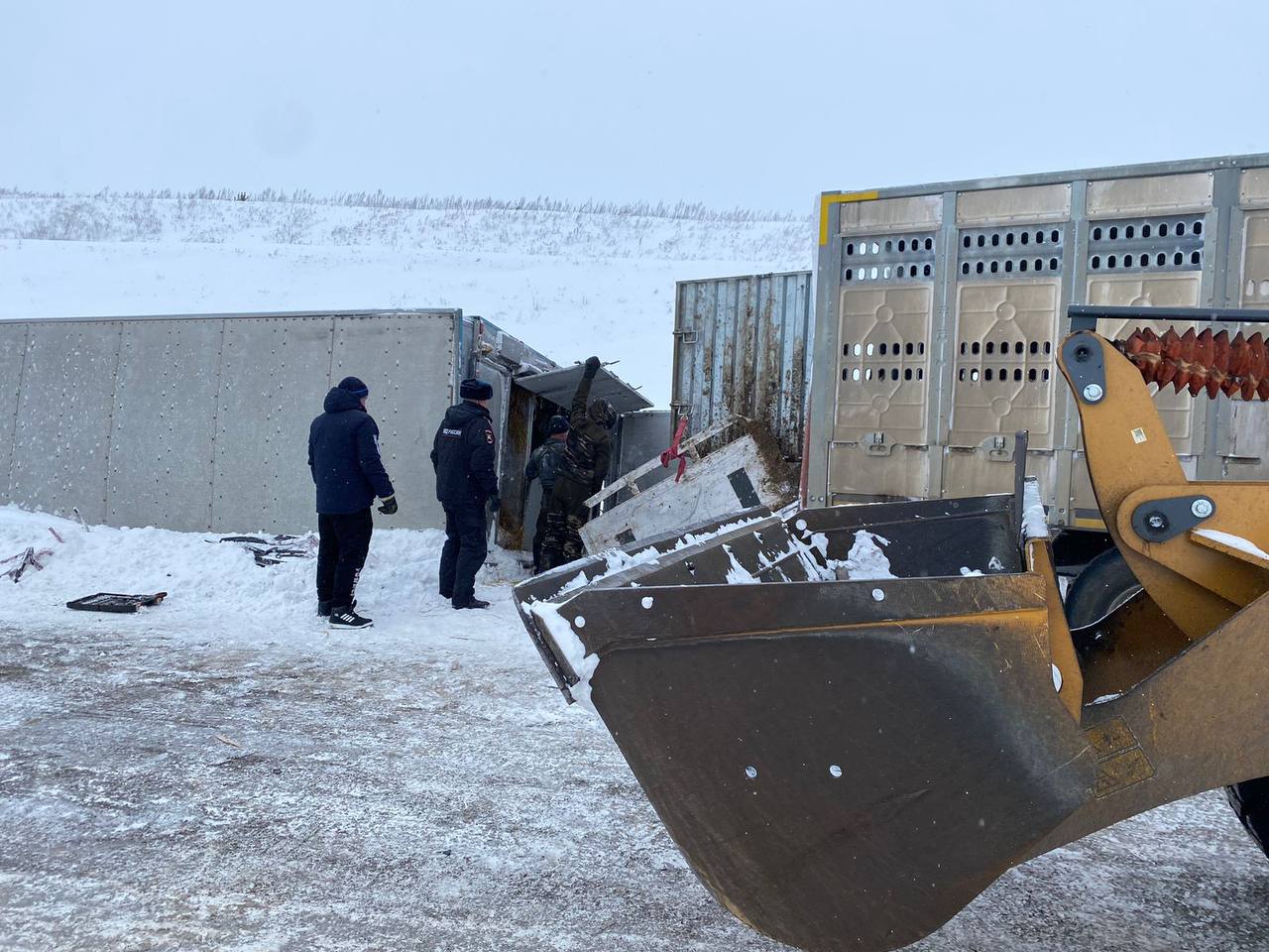 Фура с коровами влетела в другой грузовик на трассе в Емельяновском районе. 35 из 40 животных погибли, водитель в больнице.