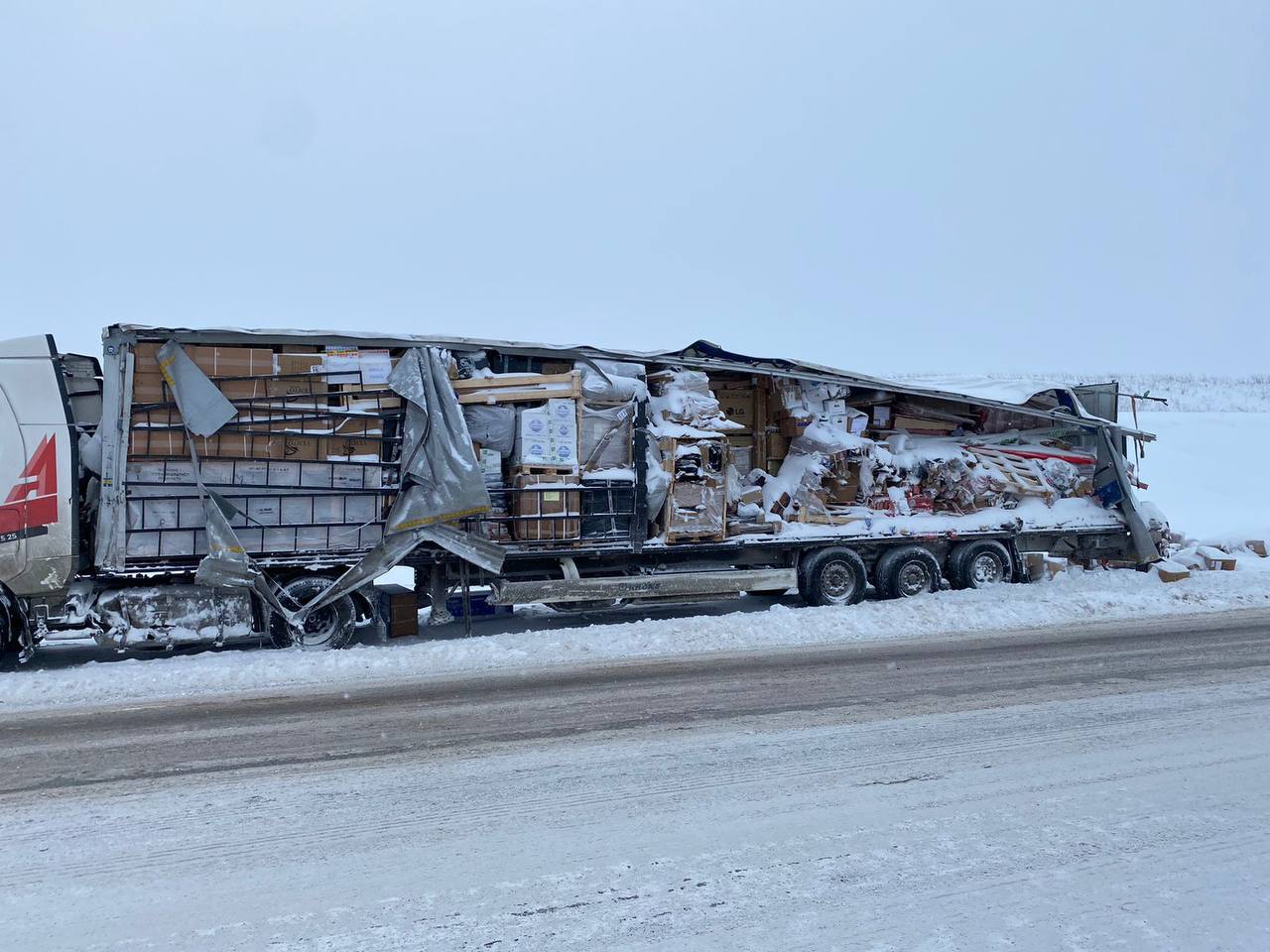 «КАМАЗ» съехал в кювет, а в кабине начался пожар. Почти все коровы – 35 из 40 голов – погибли. Выживших животных переместили в другую фуру, а водителя доставили в больницу. Груз, который выпал у Scania, отлетел в легковушку 38-летнего водителя.