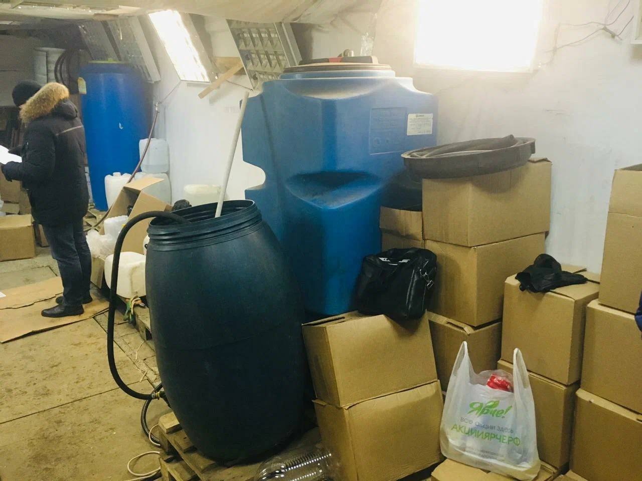 Как рассказали в полиции, в сентябре 2022 года красноярцы оборудовали в гараже в Зеленой роще подпольный цех по розливу суррогатной водки. Они закупили питьевую воду, спирт, стеклянные бутылки и пробки. В гараже мужчины установили 3 бака на 200, 300 и 500 литров, чтобы смешивать жидкости.