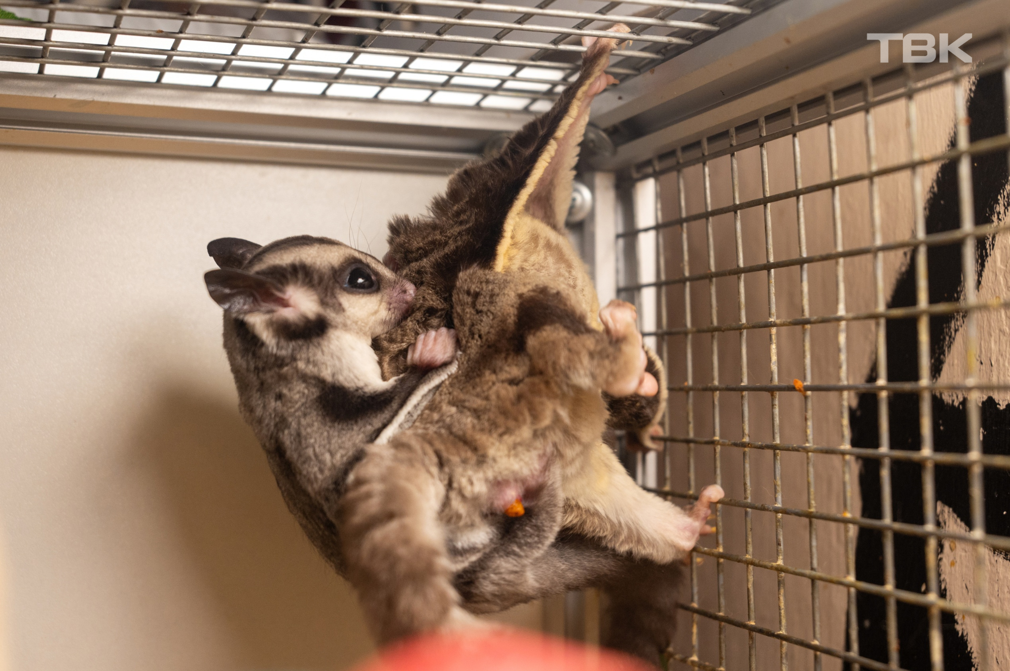 Поссумы – это сумчатые животные, их детеныши по несколько месяцев могут жить в кожаном мешке. Там зверькам тепло и сытно – через сосок они пьют молоко и почти все время спят. Взрослые же особи предпочитают сверчков и жуков. А еще поссумы не прочь полакомиться медом.Сейчас Виктор для разросшейся семьи поссумов планирует покупать клетку побольше, чтобы у каждого питомца была своя комната.