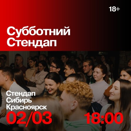 Субботний стендап – концерт от лучших комиков объединения «Стендап Сибирь». Резиденты усердно готовились, поэтому гарантируют качественный материал, уютную атмосферу и хорошее настроение. Стоимость билета – 500-700 рублей, приобрести можно по ссылке.