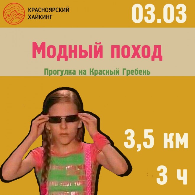 Фишка похода – модная одежда, пишут организаторы: «Приветствуем яркую и теплую одежду, которую можно снять на телефоны и фотоаппараты». Зарегистрироваться можно по ссылке. После регистрации участникам объявят, где будет сбор.