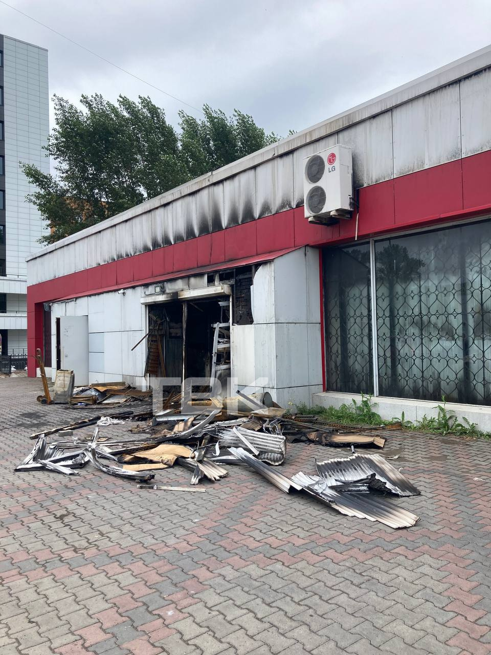 В центре Красноярска ночью загорелся торговый центр: 1 человек пострадал