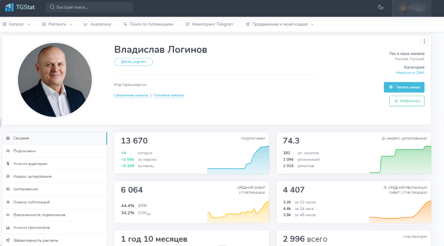 По данным сервиса «TGStat» за последнюю неделю на Telegram-канал Владислава Логинова подписались чуть больше 2 тысяч человек. Больше всего подписчиков появилось 12 и 15 июля – 1100 и 1600 человек соответственно. При этом 11 июля на мэра подписались всего 18 человек.