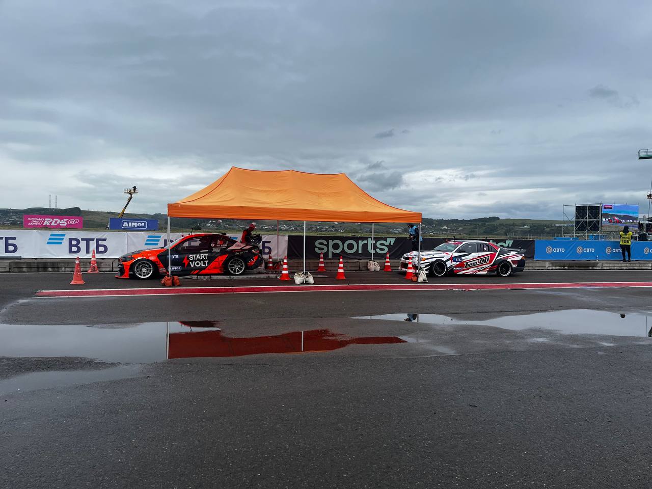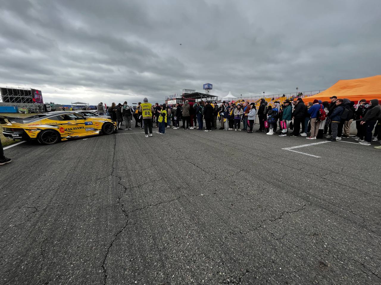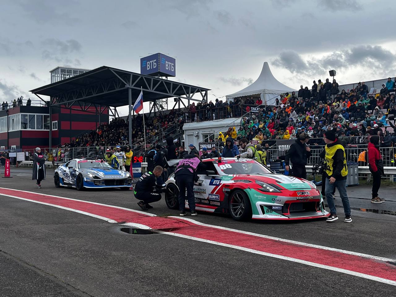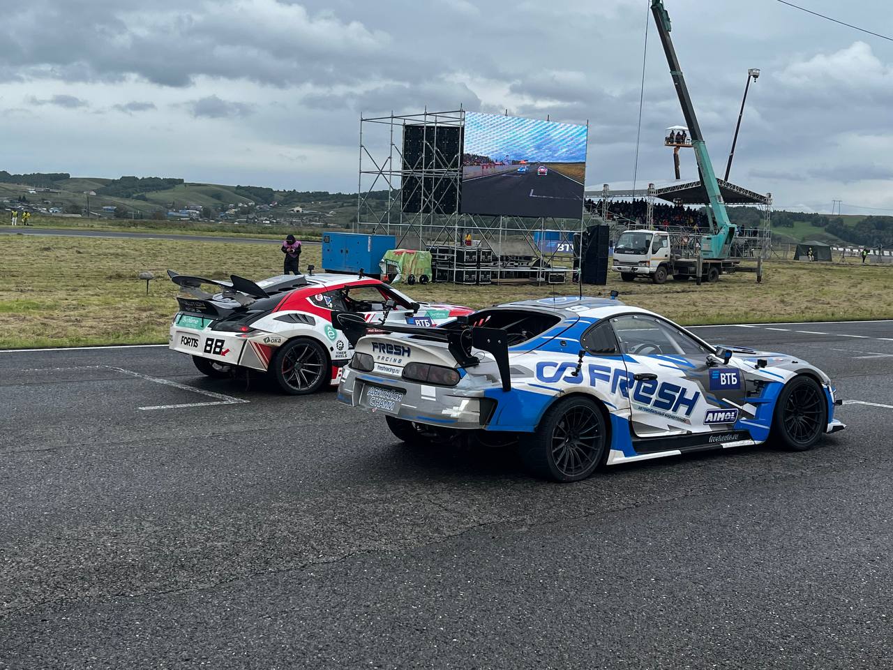 Перед началом заездов у зрителей остается время рассмотреть машину пилотов. Сегодня в основном дрифтят на Supra, BMW, Toyota Mark 2, Flanker.