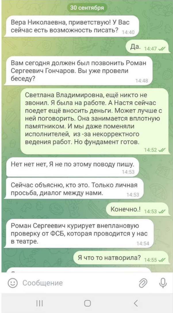 Историей про телефонных мошенников поделилась актриса театра имени А. С. Пушкина Анастасия Куимова. Жертвой чуть не стала ее мама. Женщина работает в театре оперы и балета уже более 45 лет. На днях она получила сообщение в Telegram якобы от своего директора. На самом деле это оказались мошенники, которые использовали распространенную схему: прикрепили к «левому» номеру имя и фотографию руководителя, чтобы ввести человека в заблуждение.