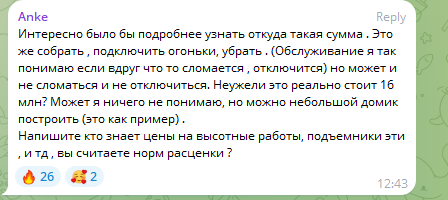 Красноярцы в соцсетях ТВК по большей части негативно отреагировали на новость о ёлке. Одних смутила цена, которую заплатят из бюджета за установку, обслуживание и демонтаж новогоднего дерева, других – внешний вид елки.