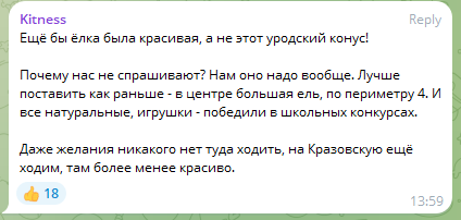 «В прошлом году была не елка, а светящийся конус. Такое себе удовольствие»