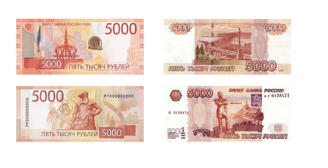 На старой 5-тысячной купюре изображен Хабаровск. С одной стороны – памятник Муравьеву-Амурскому, основателю города. С другой – мост через реку Амур. Новая купюра также выполнена в красном цвете, но уже с символами Урала. С одной стороны – стела «Европа - Азия» в Екатеринбурге, а с другой – скульптура «Сказ об Урале» в Челябинске. Также с одной из сторон есть QR-код, по которому откроется страница с памятками о защитных свойствах банкноты.«Любые банкноты подделывают, и уровень подделки зависит от уровня защищенности. Перед Банком России стоит задача повышения качества денежной наличности. Это современный облик банкнот, их уровень защищенности, долговечность. В обращение она [5-тысячная купюра] поступает постепенно, никакой разовой задачи нет, чтобы изъять образцы банкнот 97 года и заместить их образцом 23 года. Будут изыматься банкноты образца 97 года изношенные, ветхие. Этот процесс займет несколько лет», – отметил заместитель управляющего отделения Красноярск Банка России Алексей Гагарин.