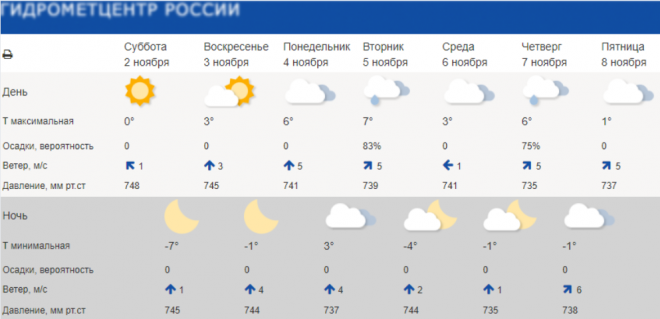 В понедельник, 4 ноября, днем будет +6°С, облачно и без осадков. Ветер южный, 5 м/с. К ночи похолодает до +3°С.