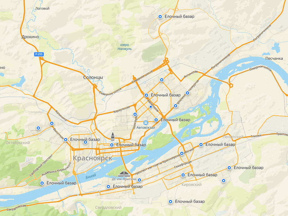Где купить живую елку в Красноярске: карта с адресами елочных базаров