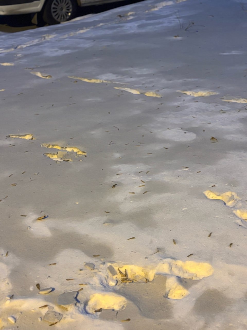 Фото темного снега в соцсетях делятся местные. Полиция начала проверку.