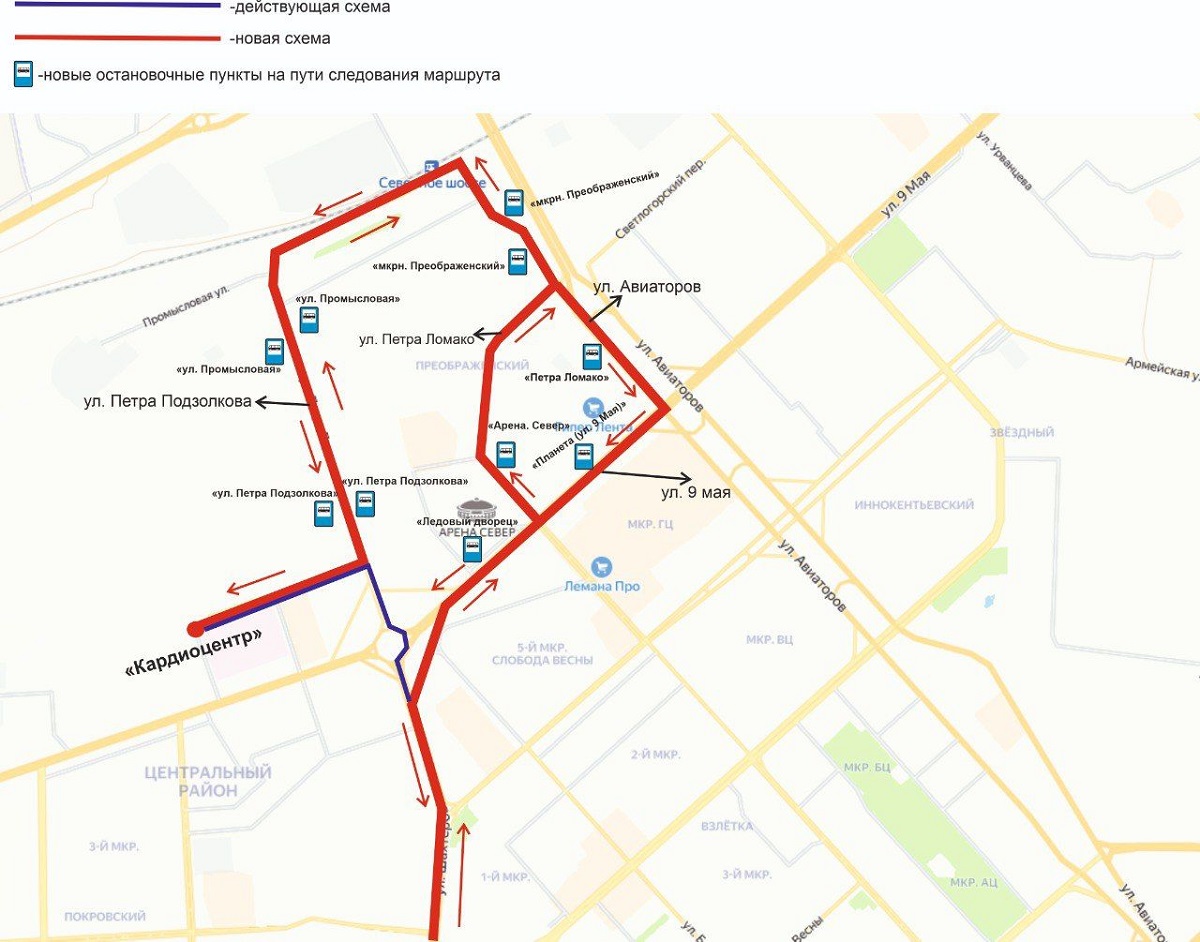 В мэрии отмечают, что об изменениях просили жители, «ведь микрорайон активно строится и транспортная доступность необходима».Кроме того, в маршрут добавят 4 новые остановки: «Арена Север», «Микрорайон Преображенский», «ул. Промысловая» и «ул. Петра Подзолкова».