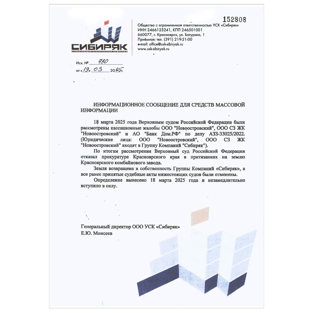 Верховный суд рассмотрел кассационные жалобы «дочек» строительной компании «Сибиряк» ООО «Новоостровский» и ООО СЗ ЖК «Новоостровский». Организациям отказывали в приватизации земель комбайнового завода. Суд вынес решение в их пользу. Рассказываем подробнее в материале.