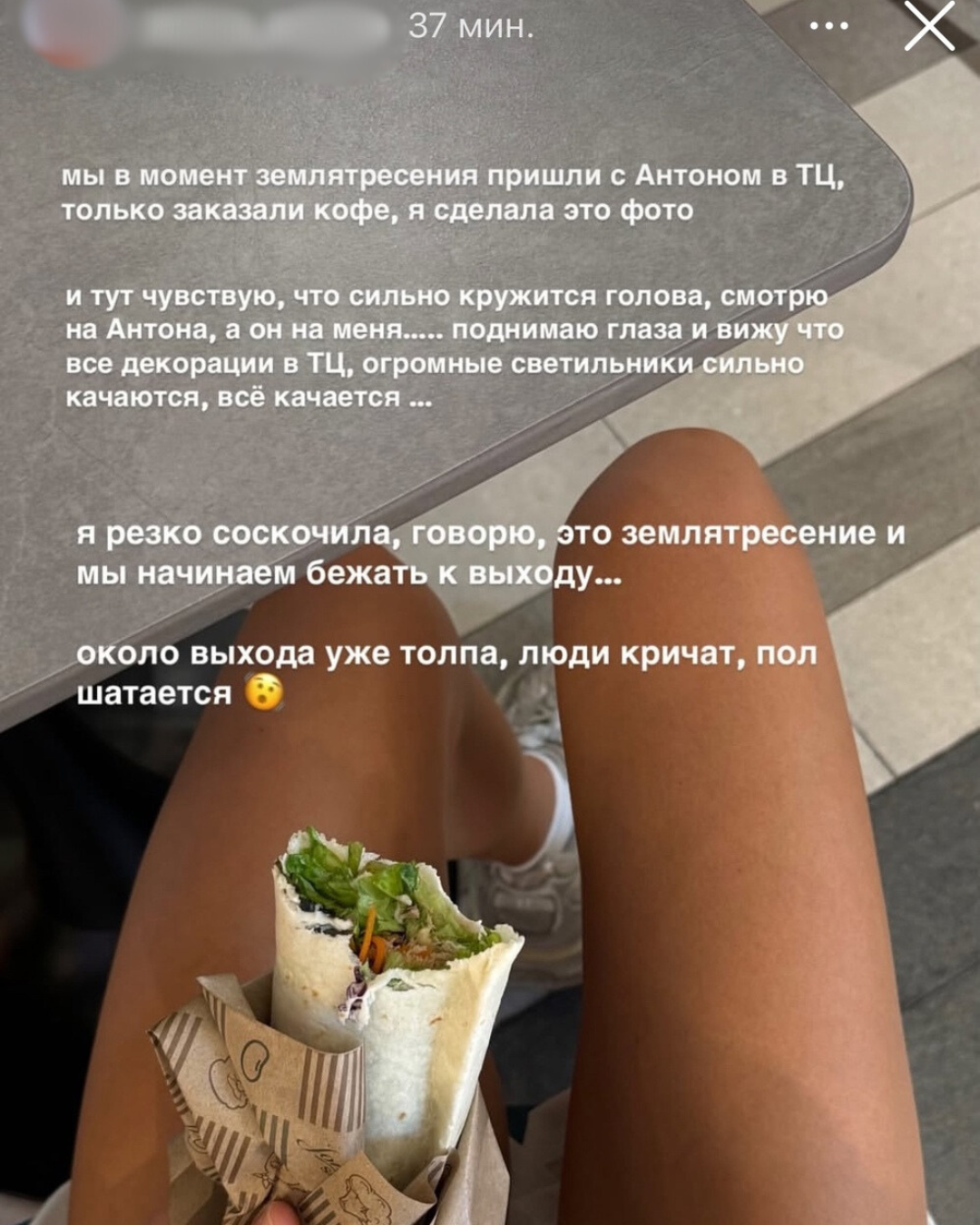 После эвакуации люди ушли подальше от зданий – в парк – и проводили там время, пока им не разрешили вернуться обратно. Внутри помещения, на стене, девушка обнаружила большую трещину, которой раньше там не было.