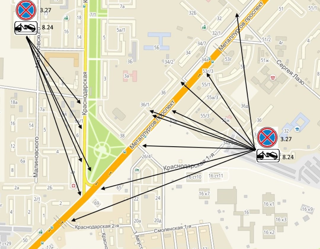 - на ул. Краснодарская от строения № 6г до пересечения с пр. Металлургов.