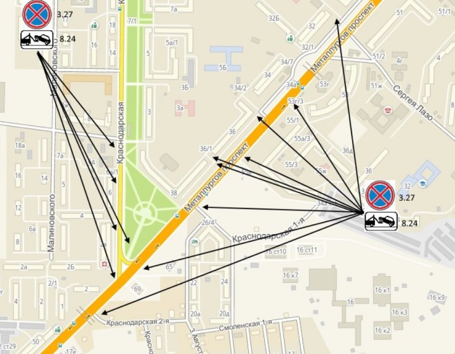 - на пр. Металлургов от Краснодарской до здания № 53г по пр. Металлургов;