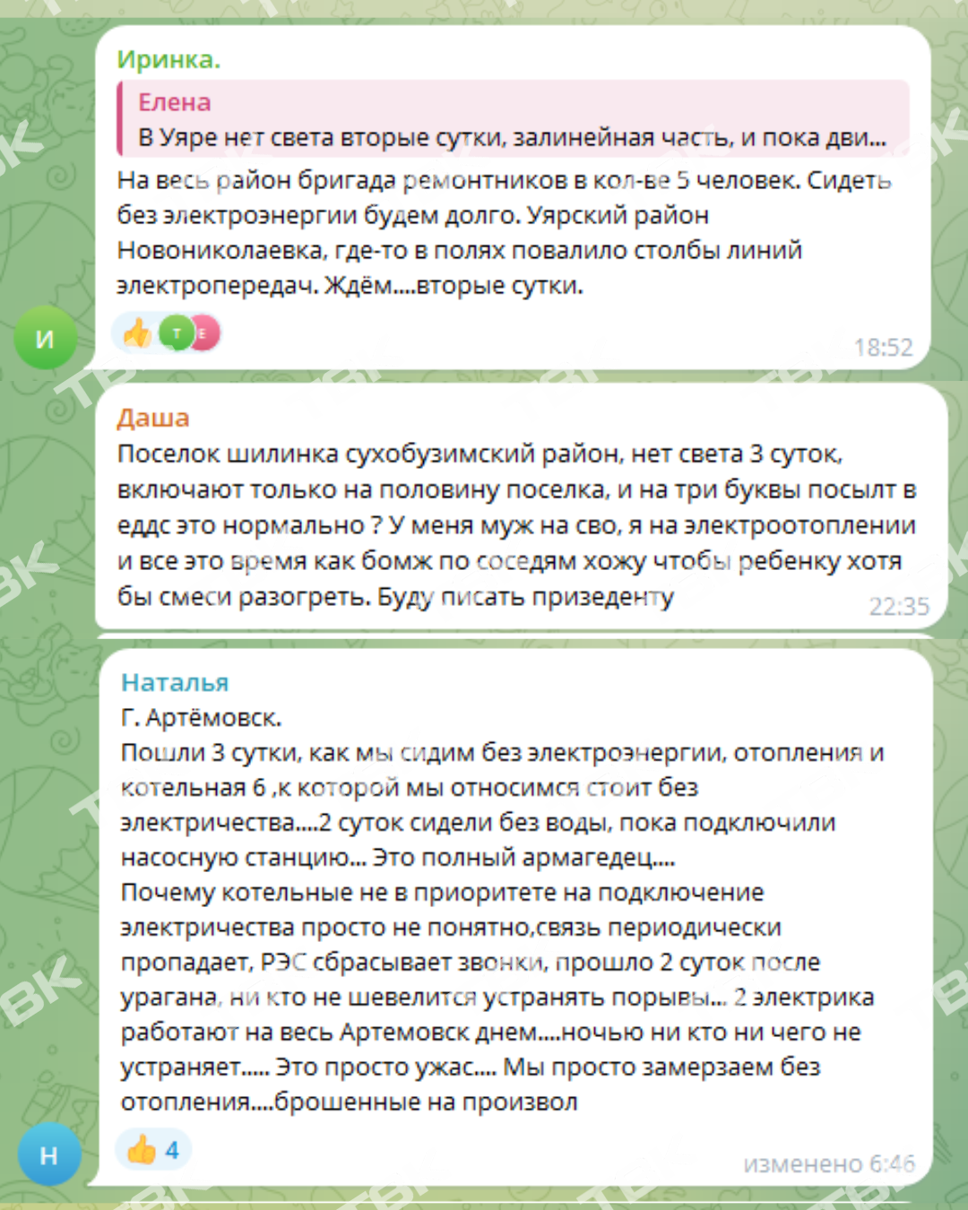 В комментариях жители Красноярского края массово сообщают о до сих пор не устраненных последствиях урагана.