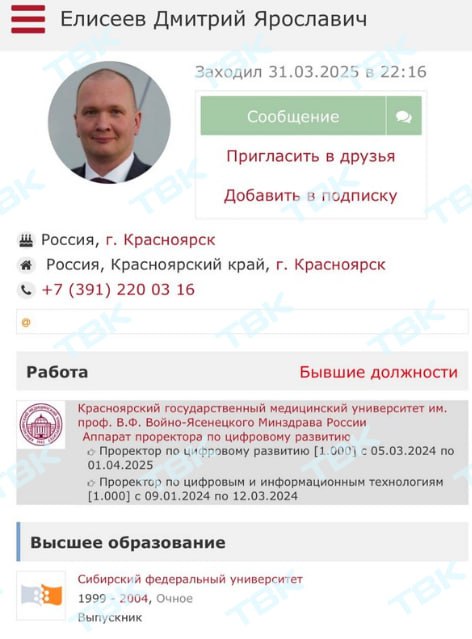 В пресс-службе КрасГМУ ТВК пояснили, что с проректором по цифровому развитию Дмитрием Елисеевым 31 марта закончился трудовой договор. Там подчеркнули, что иных оснований для увольнения Елисеева нет.