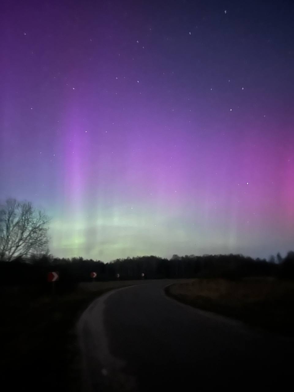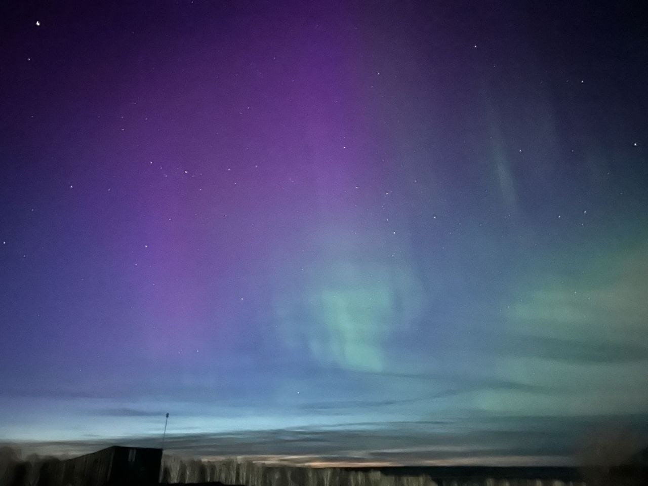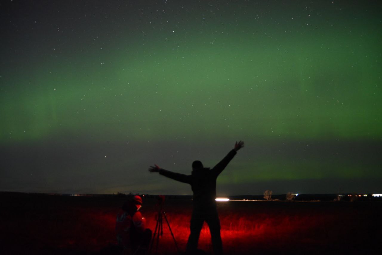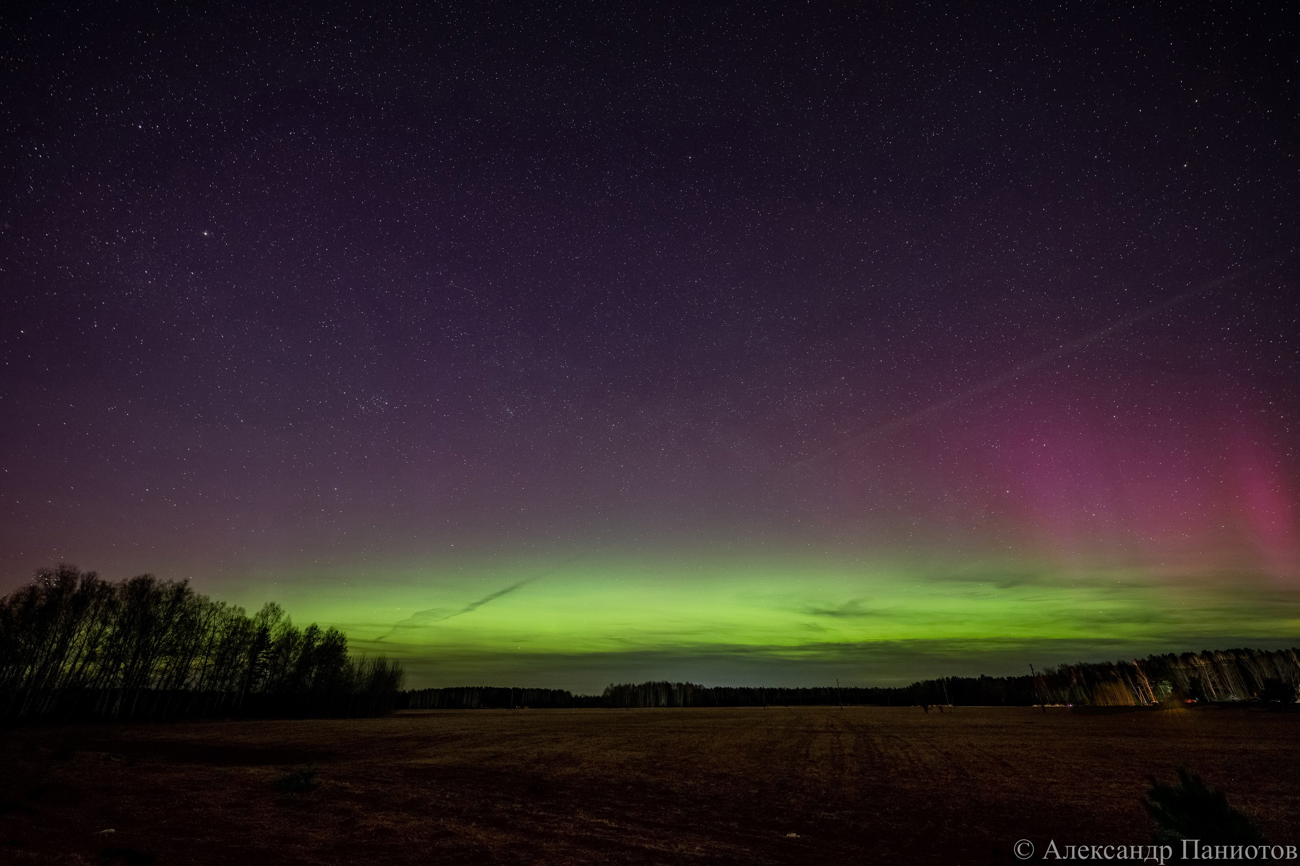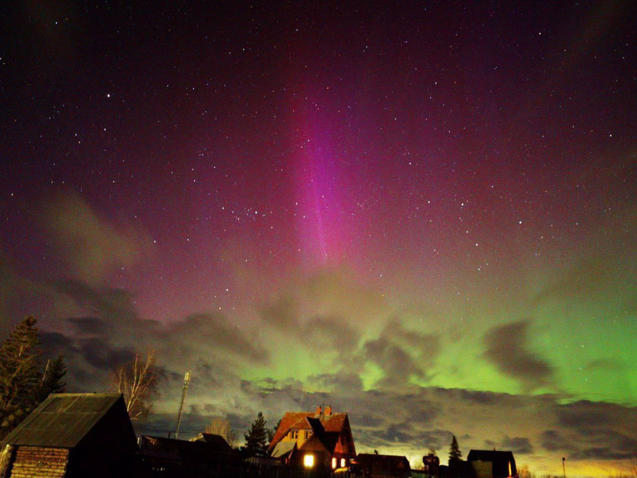 «Пока вы спали, мы наблюдали! Потрясающая красота, это что-то невероятное у нас в микрорайоне было», – пишет Андрей.Переливы в небе видели и за городом. Северное сияние под Красноярском успел сфотографировать Александр Паниотов.