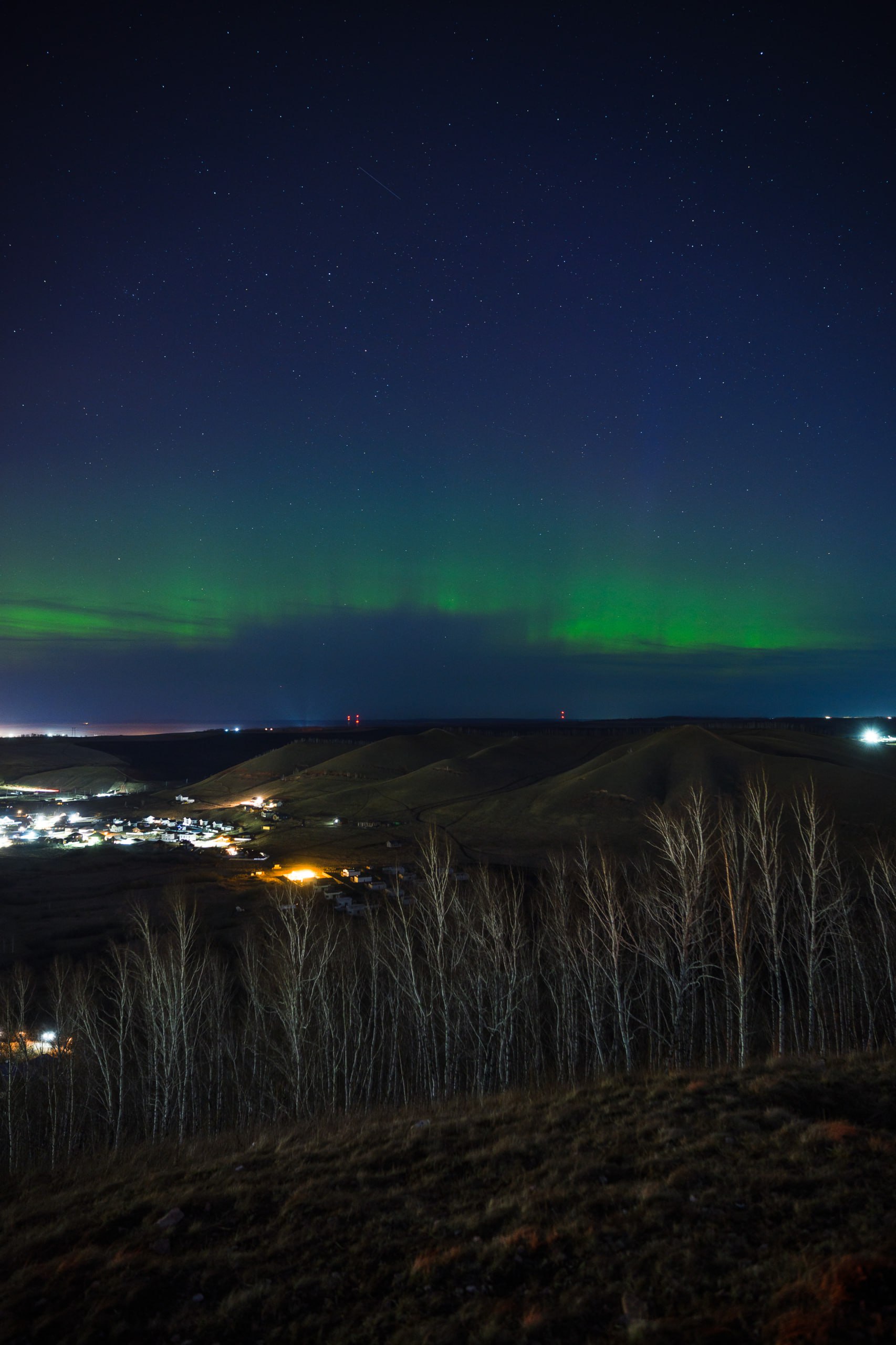 В ночь на 17 апреля в Красноярске было видно северное сияние. Переливы зеленого и фиолетового в небе очевидцы успели сфотографировать и в черте города, и в разных районах Красноярского края. Публикуем подборку завораживающих кадров.