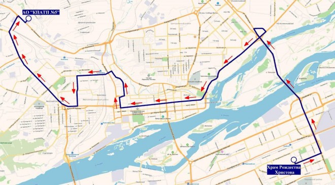 Четвертый маршрут от храма Рождества Христова также отправится по левому берегу – сначала в центр, а затем по Свободному и Высотной доедет до Калинина.