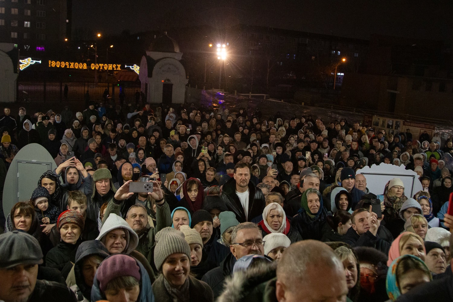 Служба прошла в по-настоящему праздничной атмосфере под звуки церковного песнопения. Во время Пасхального богослужения велась прямая трансляция, здесь ее можно посмотреть в записи.
