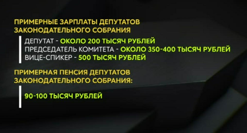 Сколько в реальности получают пенсию уже бывшие депутаты и какая зарплата у нынешних – можно только предполагать. Ведь с 2023 года парламентарии публично не раскрывают свои сведения о доходах. По данным источника ТВК, сейчас зарплаты депутатов варьируются от 200 до 500 тысяч рублей, в зависимости от должности: простой депутат, председатель профильного комитета или вице-спикер. При этом выплаты получают не все парламентарии, а только те, кто в ЗС на постоянной основе.