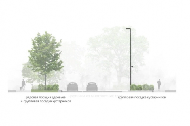Помимо парковок и пешеходных и вело-зон, важно еще и озеленение. Аварийные и опасные деревья уберут. На их месте должны высадить новые крупномеры, например, рябины или яблони.