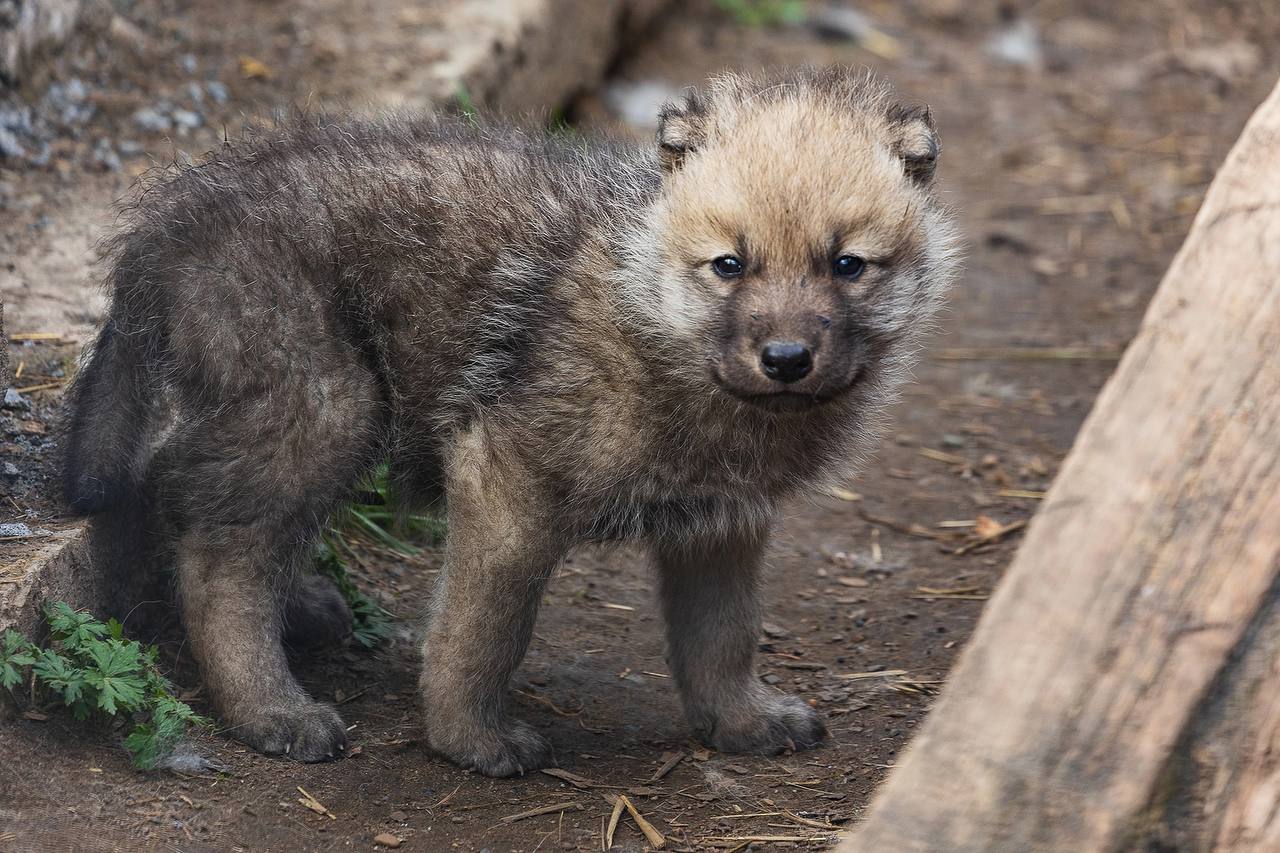 Три волчонка родились месяц назад – 19 апреля. Сейчас, как рассказали в «Роевом ручье», малыши начали чаще вылезать из логова, а также у них уже открылись глаза и прорезались зубы.
