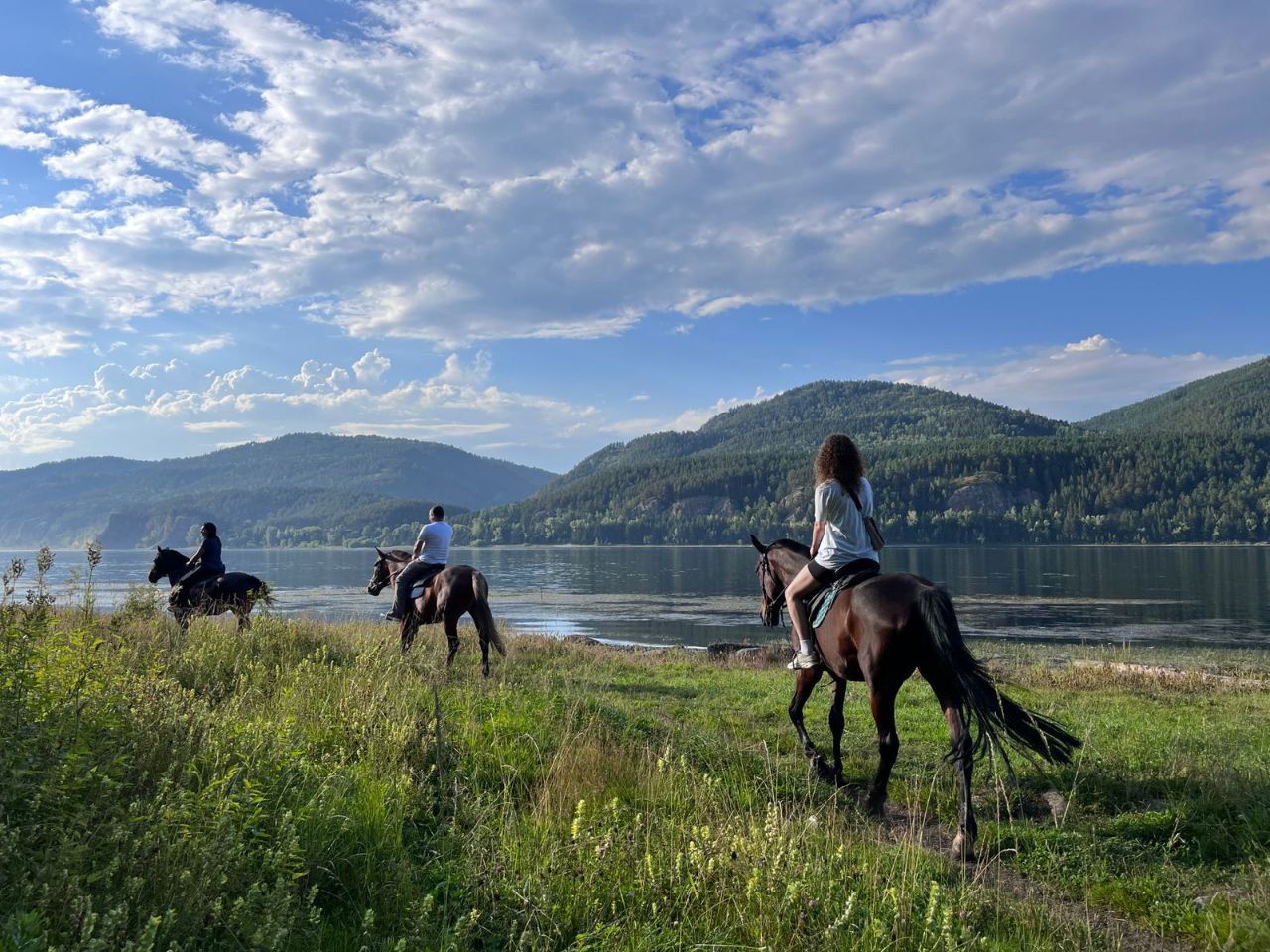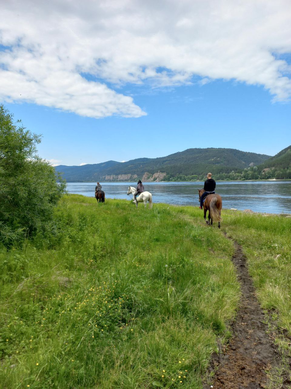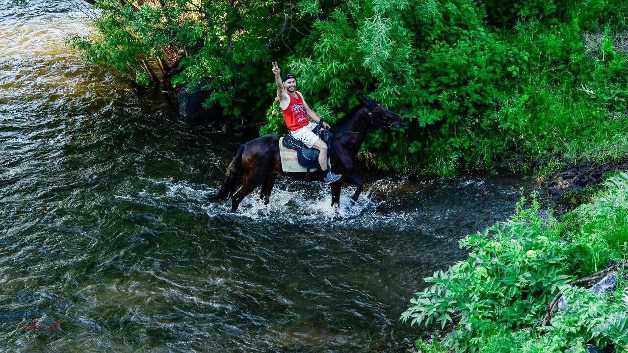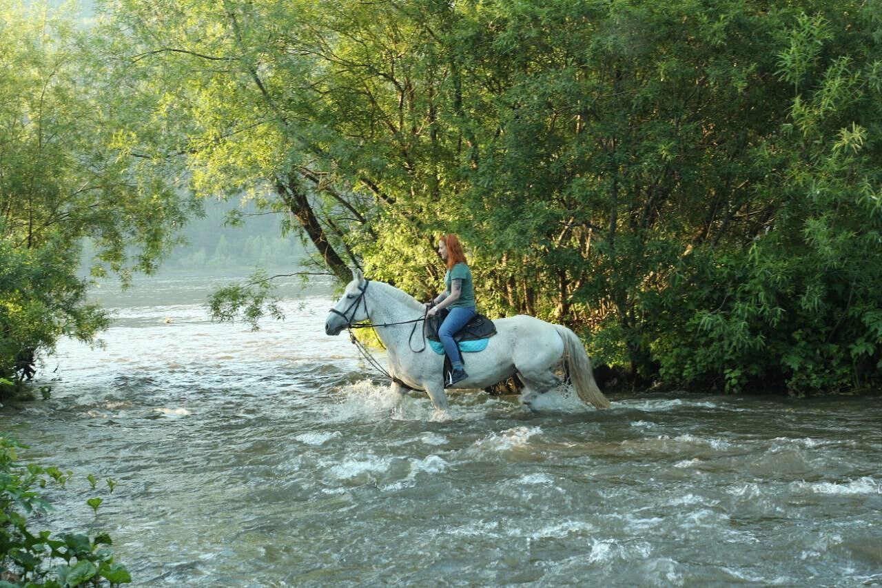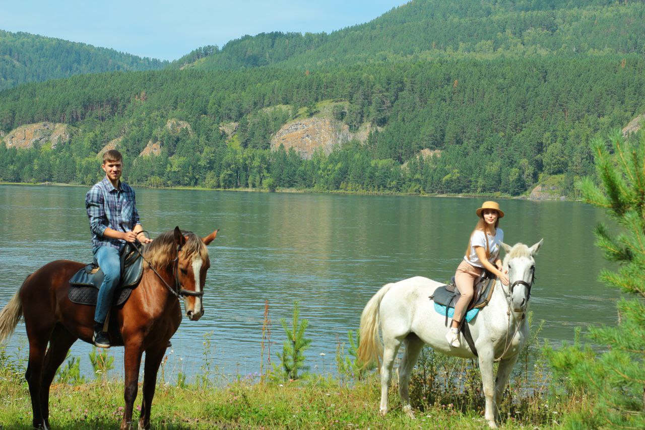 Конные прогулки по берегу Енисея с переходом рек вброд