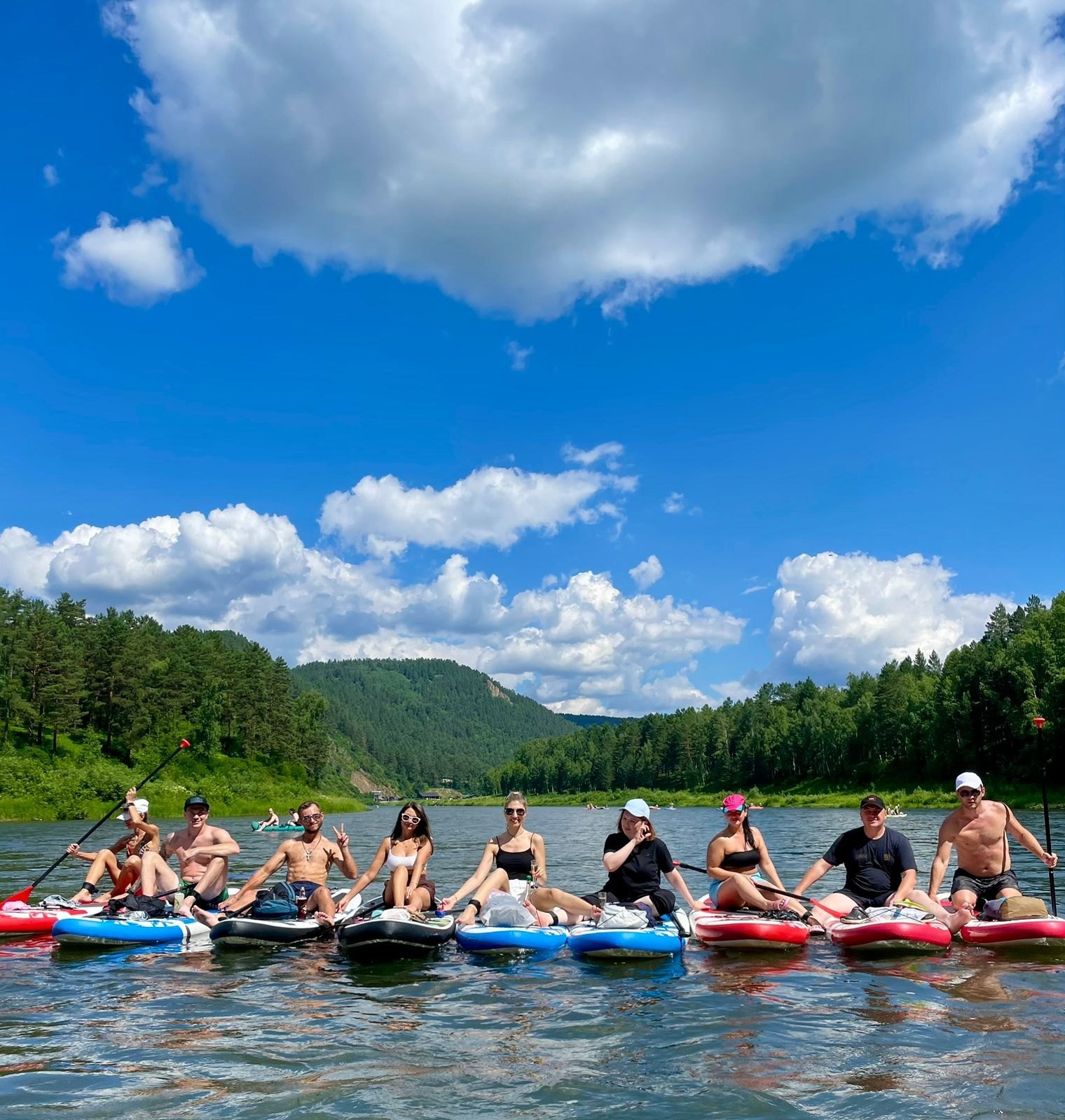 Клуб «Саперы Красноярск» предлагает групповые сплавы на сап-бордах с инструктором по разным живописным маршрутам: