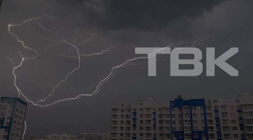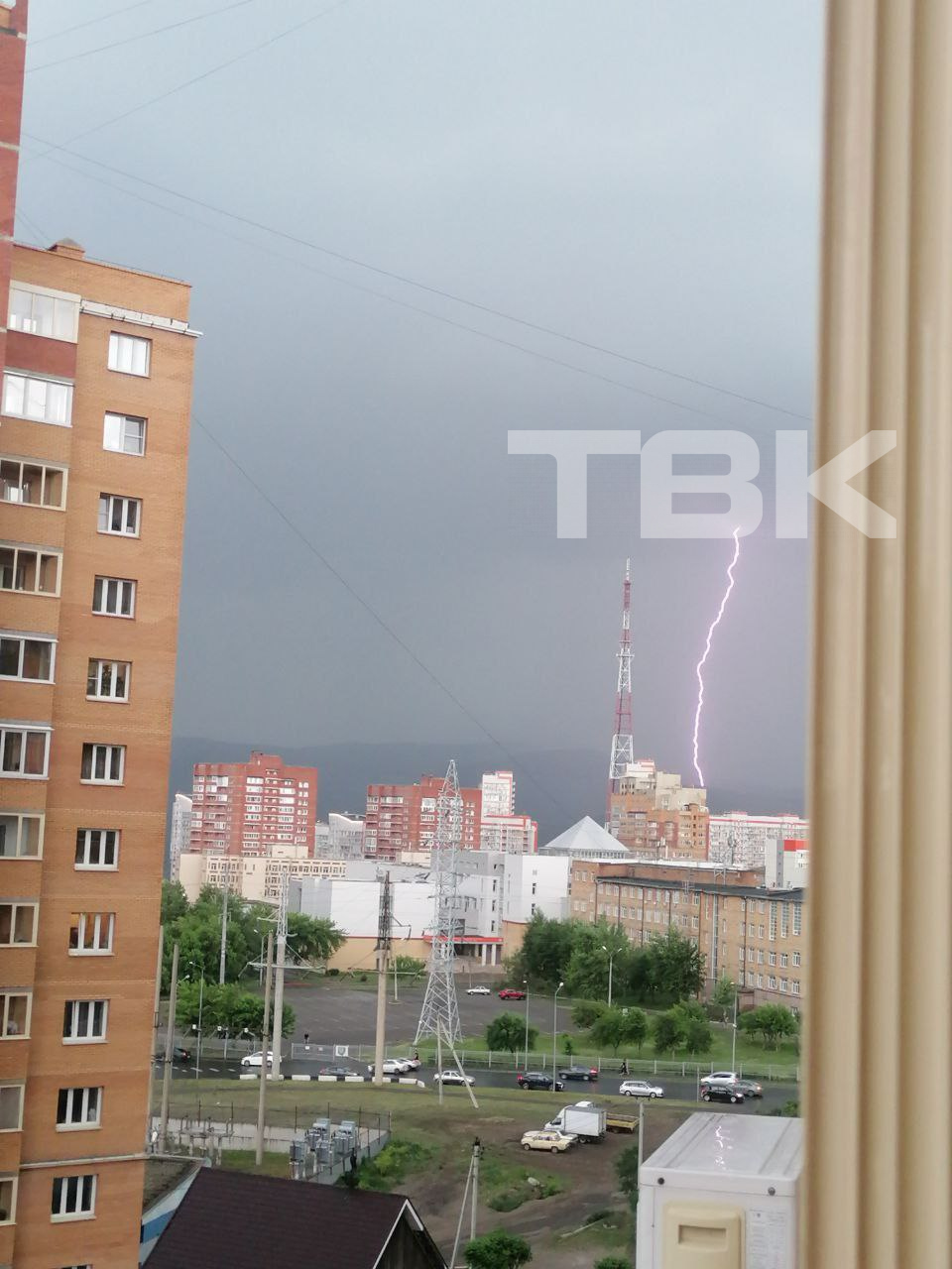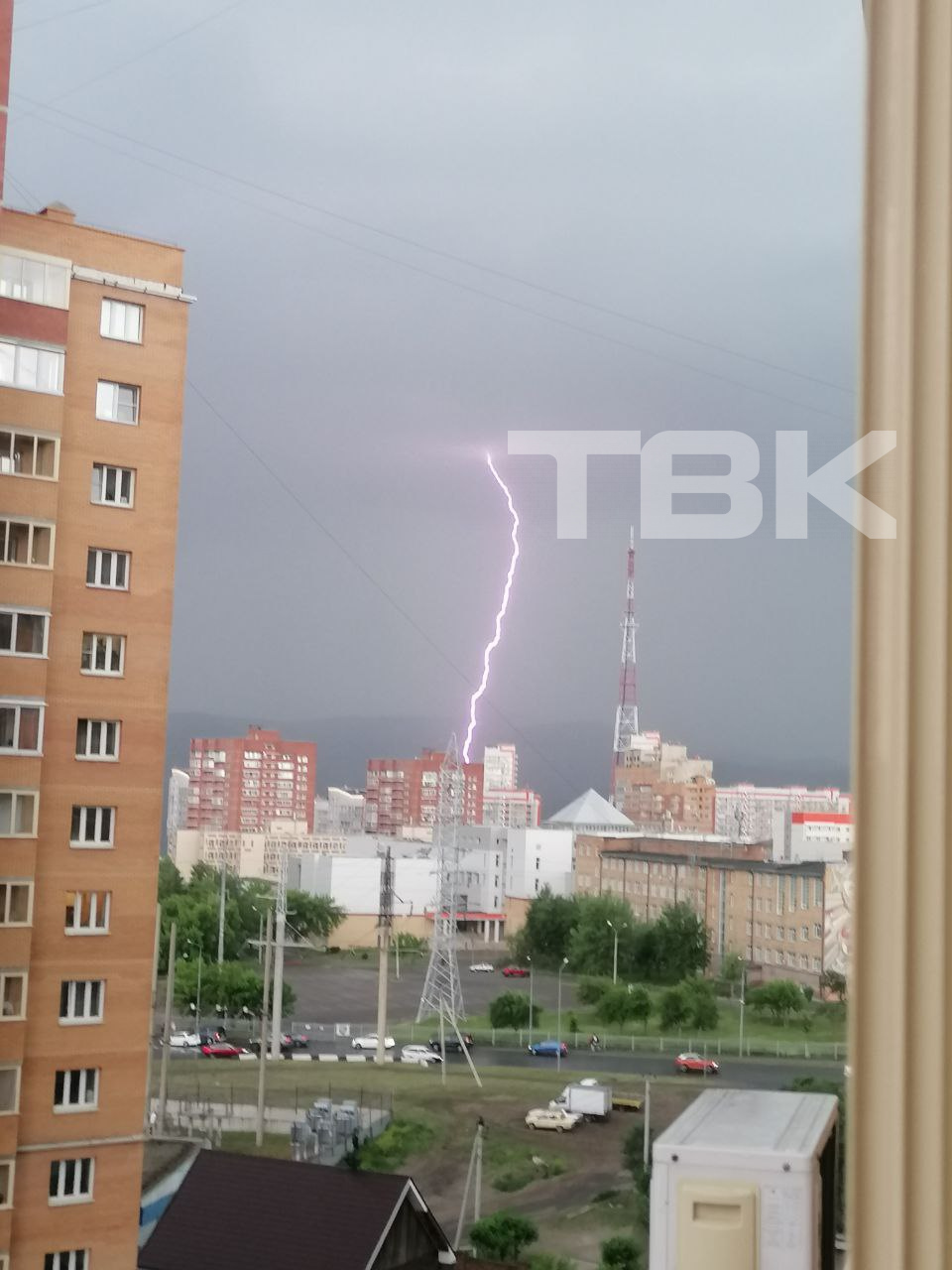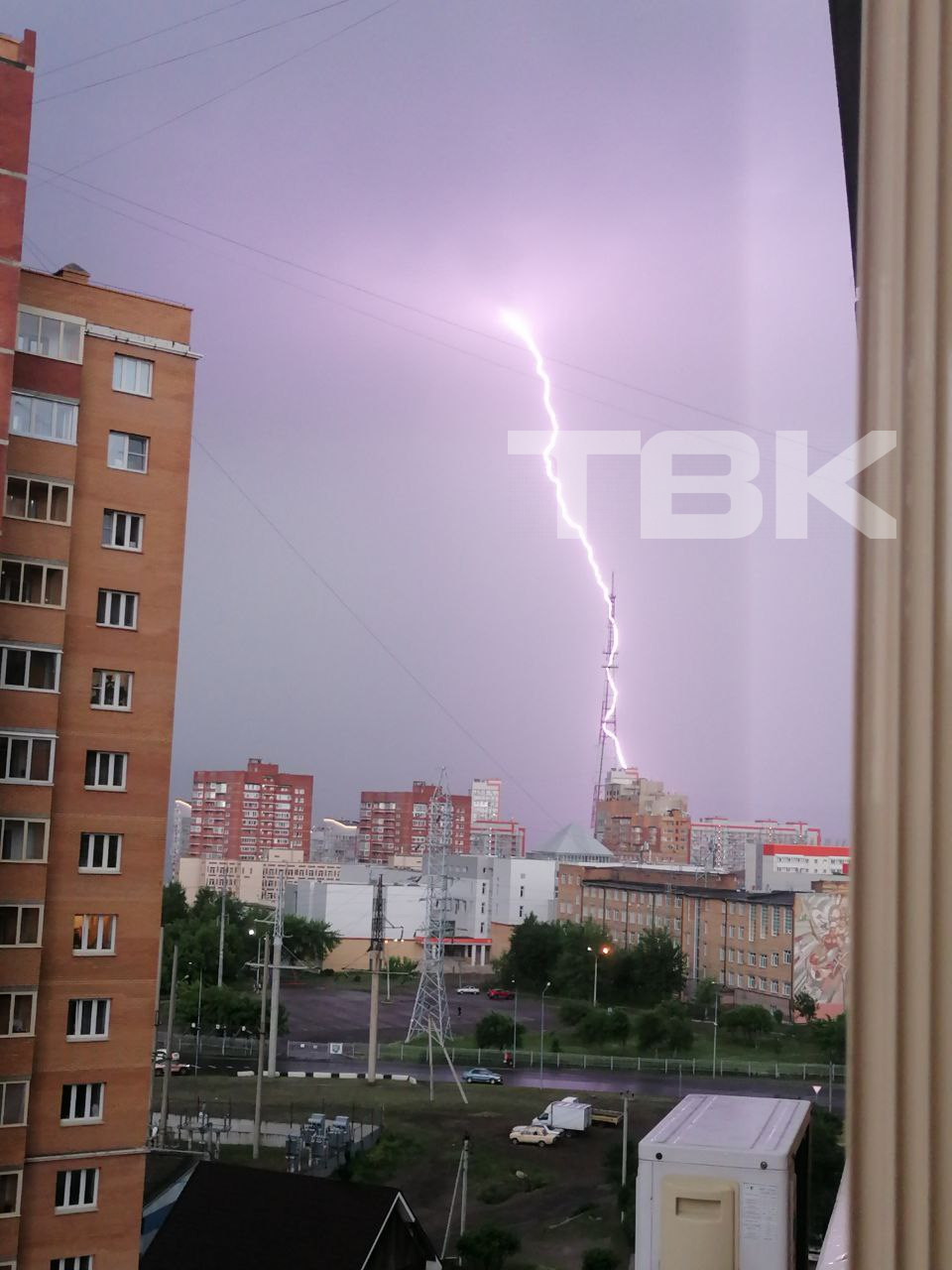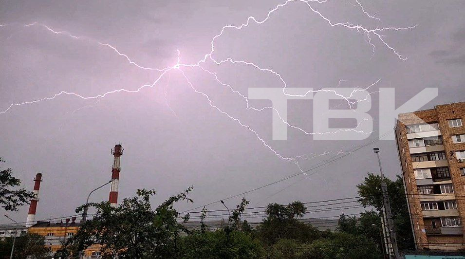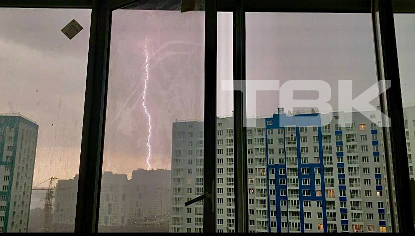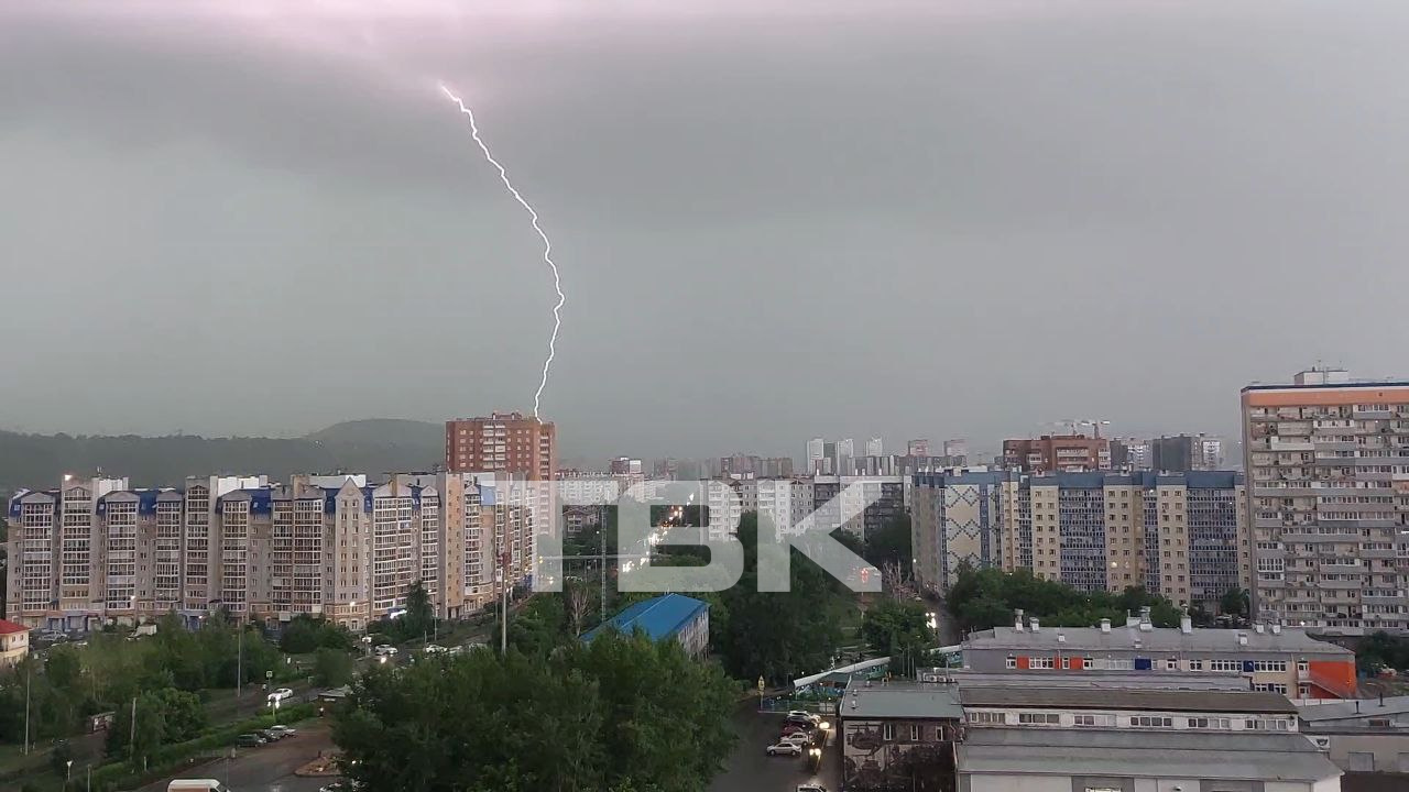 Молния попала в мачту красноярского радиотелецентра.