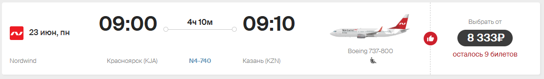 Дополнительный рейс появился и у компании Nordwind. Один самолет также отправляется в Казань в пятницу, другой – в понедельник.Перевозчиком будет «Россия». В столицу Татарстана можно улететь по вторникам, пятница и воскресеньям. Цена билетов – от 9 тысяч рублей, без учета багажа.