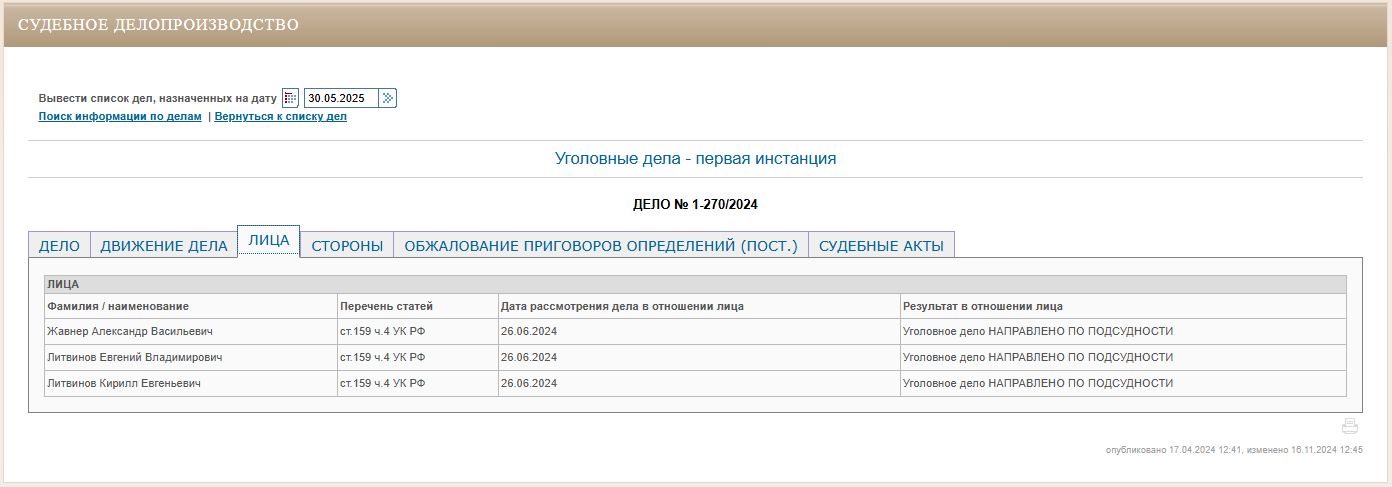 Ранее из-за махинаций с землей Рыбинский районный суд признал сообщников виновными в мошенничестве. Александр Жавнер проведет в колонии общего режима 4 года. Евгений и Кирилл Литвиновы – 1 и 3 года.