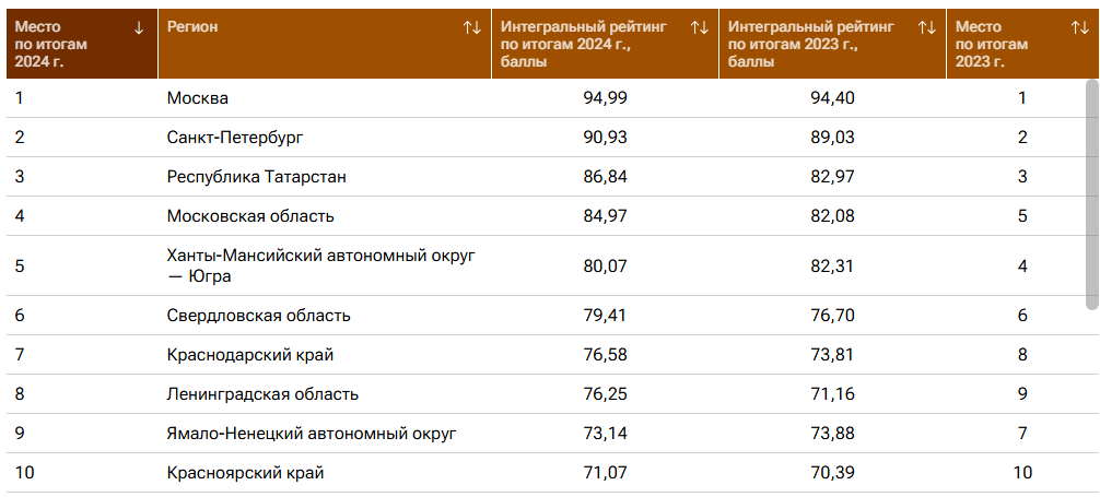 10 место в том же рейтинге Красноярский край занимал также в 2023 и 2022 году. В 2021 регион был на строчку выше – с рейтингом 66,3. При этом в 2024 году количество баллов у края составляет чуть больше 71.