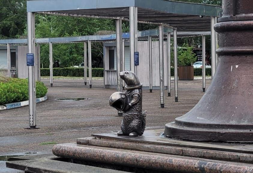 - Первый «сбежавший» с Татышев бронзовый суслик появился на набережной. И уже в шарфике!