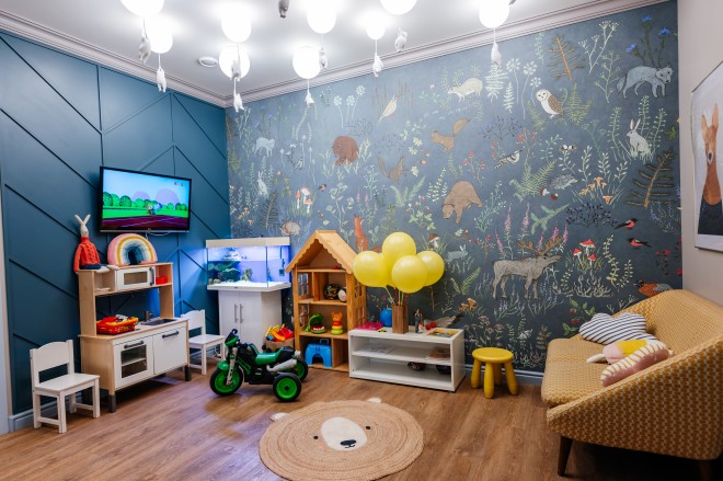 В Witar Kids малышей встречает уютный холл с большим аквариумом, для детей здесь приготовили настольный футбол, игровую зону, журналы про мультгероев и книжки.