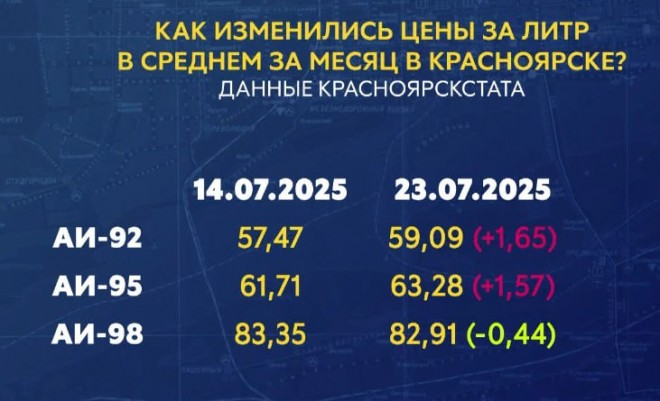 По данным Красноярскстата, в среднем же по городу популярное топливо подорожало примерно на полтора рубля. Но повышение цены коснулось не только нашего города.